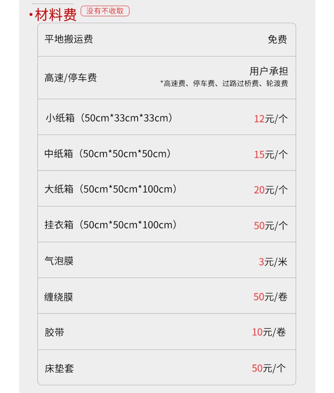 箱货搬家(含2-4人工搬运费)见收费标准